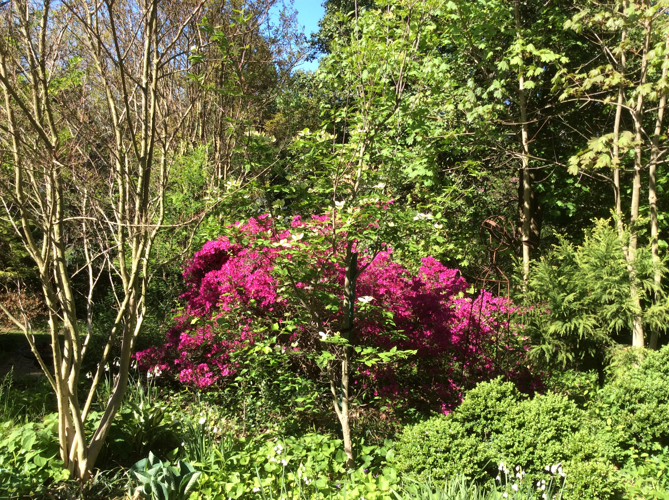 Birds need a place to nest, shelter, feed. The large trees need a story: height, fruit, foliage. Fleshing out the larger trees became my sister’s mission. She added hundreds of trees, a dozen or more varieties of hydrangea, every type flowering bulb she could find, seven varieties of Japanese Maple, indigenous trees…you get the idea.